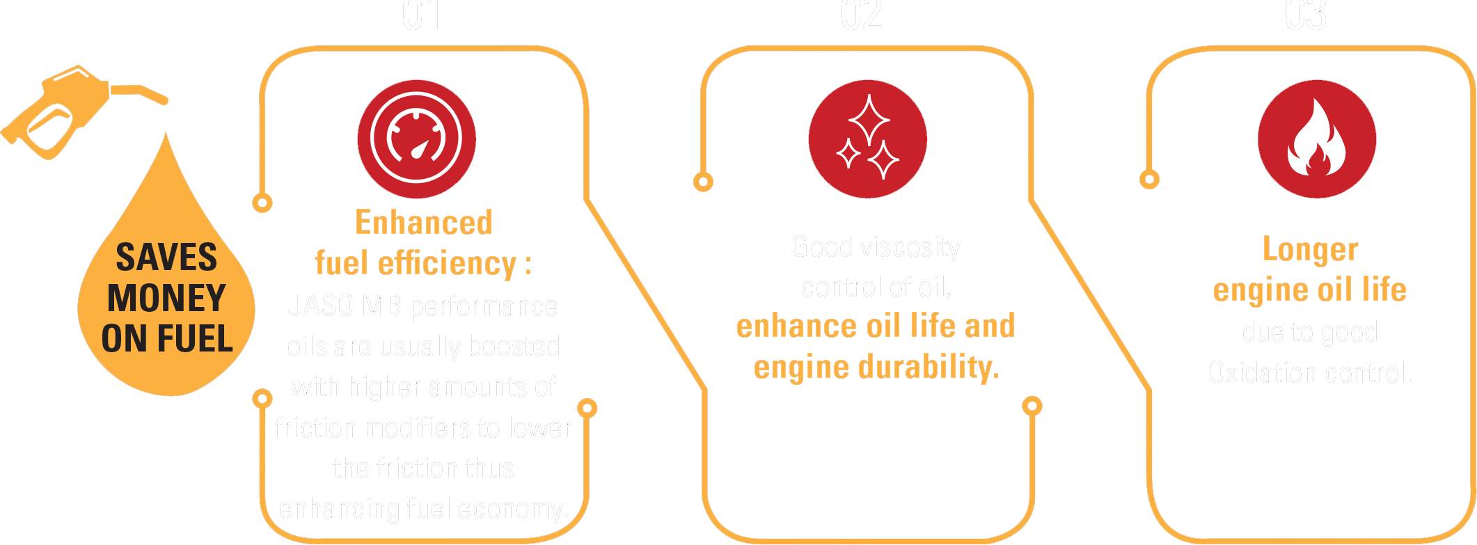 Specially formulated to deliver a smoother ride and keeps the engine cool Exhibits low friction characteristics to help with fuel economy Improved thermal stability increases protection against engine heat damage JASO MB for compatibility with most modern Japanese scooters