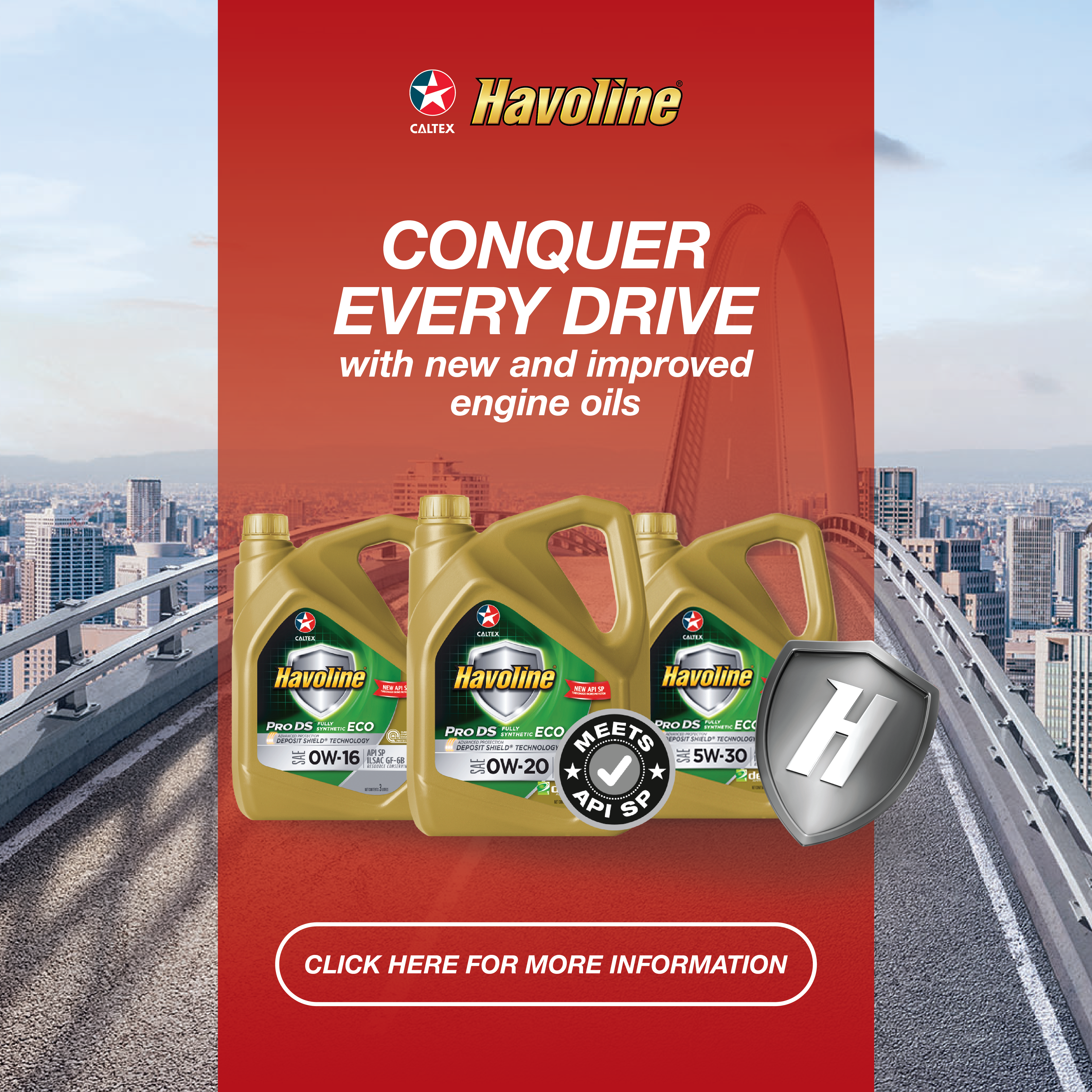 Over 30 million motorists depend on Havoline advanced motor oil technology to continuously protect their engines against premature wear. Protect your vehicle. Protect your investment. And keep going with Caltex Havoline motor oils.